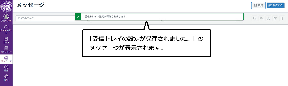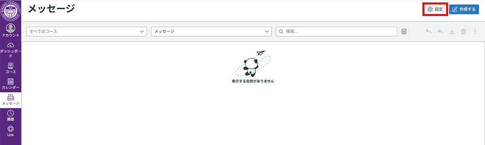 グローバルナビゲーション「メッセージ」では、コースのメンバーやグループ、セクションへのメッセージの送信と、受信したメッセージの確認をすることができます。
